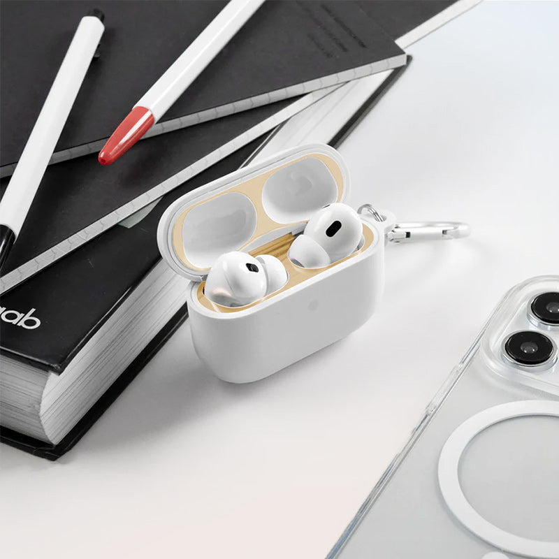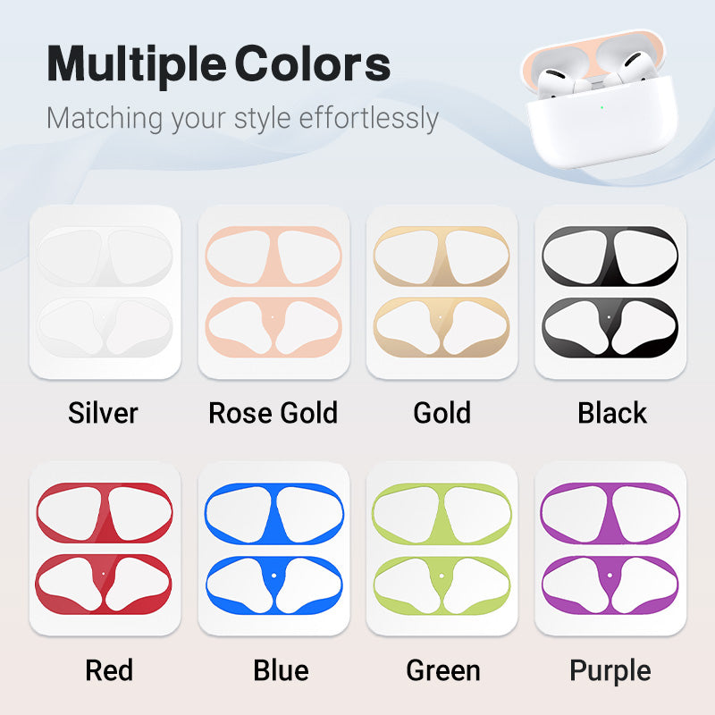 ÁBHAR MARTHANAÍ - Déanta as ábhair ardchaighdeáin atá in ann úsáid laethúil a sheasamh, cuireann an garda deannaigh seo cosaint fhadtéarmach ar fáil do chás d’AirPods, ag cinntiú go bhfanann sé i riocht den scoth.