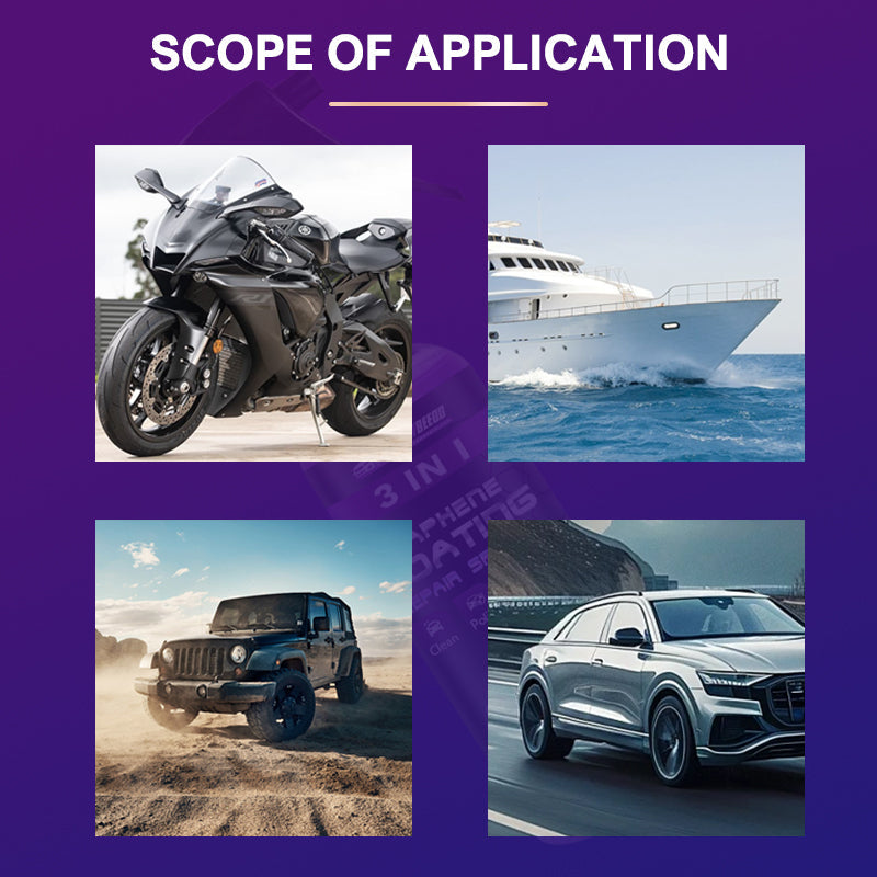 Oiriúnach do chorp gluaisteáin, gaothscáth, gloine fuinneoige, ceannsoilse, moil roth, agus páirteanna crómáilte, rud a fhágann go mbeidh do charr ag lonrú mar nua.